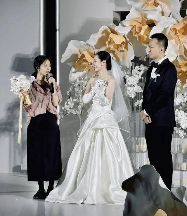 而在这场婚礼上,最动人的瞬间之一,便是董晴转身将手中的捧花,直接塞给了台下的谭松韵。她对着这个从《最好的我们》时就相识的闺蜜说:“给我的女孩!”